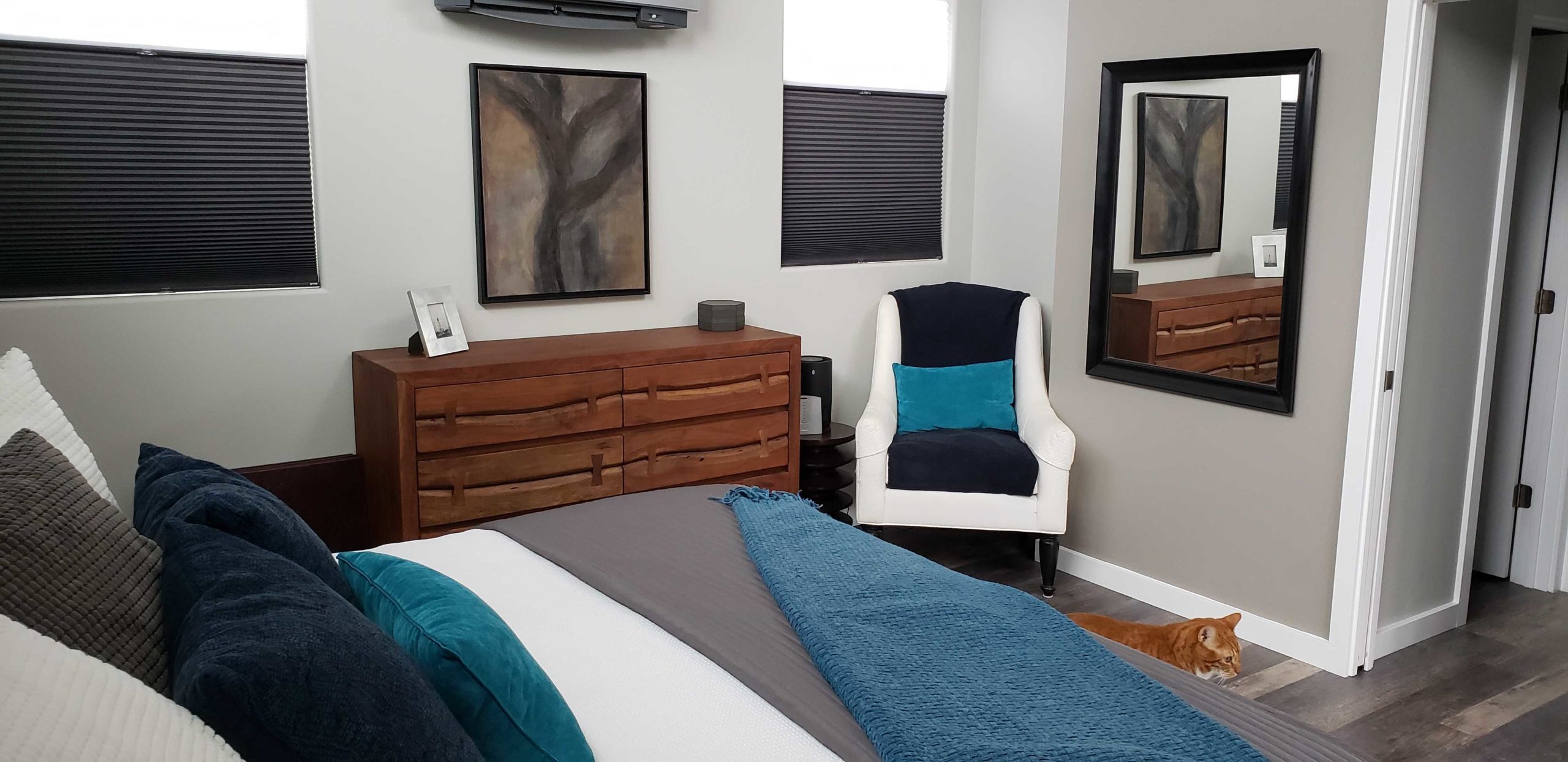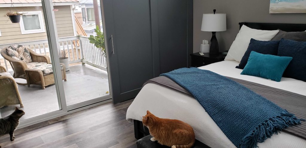When we moved into our floating home in 2017, the upstairs was very much like a loft: the master bedroom and the living area were connected over the top of the master bathroom.