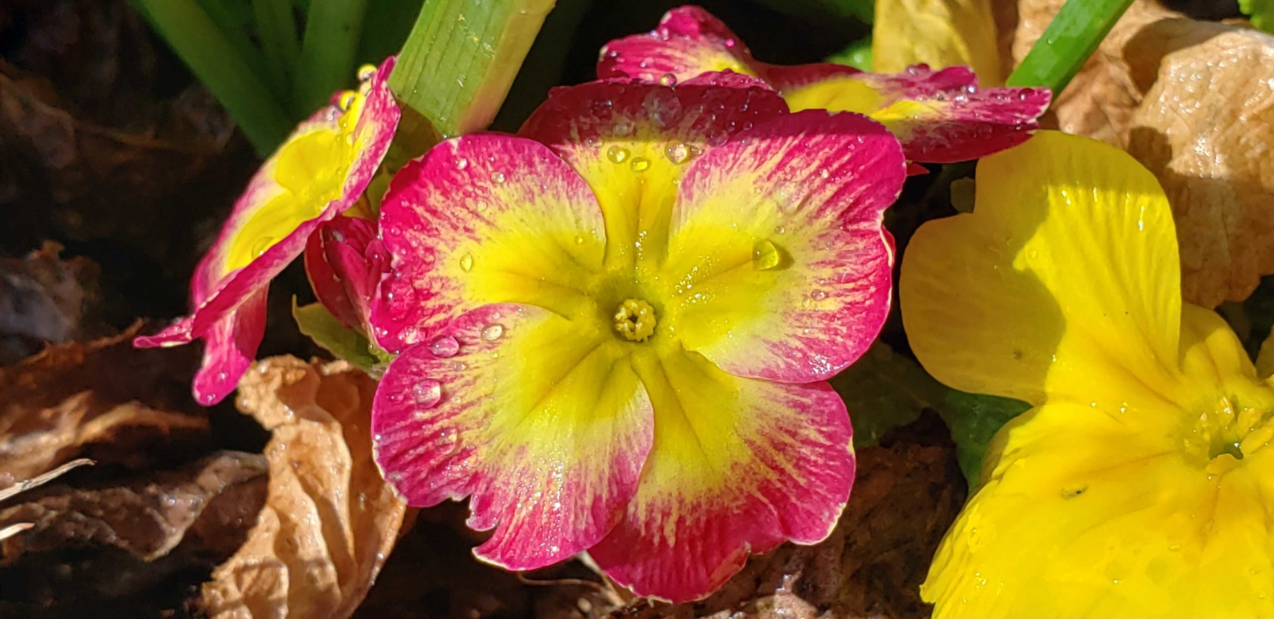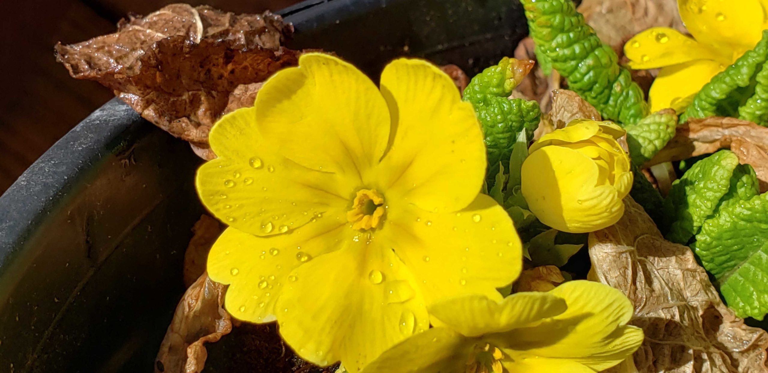The primroses are returning after not getting along with the snow.Nope, no idea what this flower is. I seem to have not done my usual trick of sticking the plant’s tag into the pot this time. If you know what it is, please share!And, of course, the Camelia Japonica continues to impress, having provided flowers for us through the entire winter!